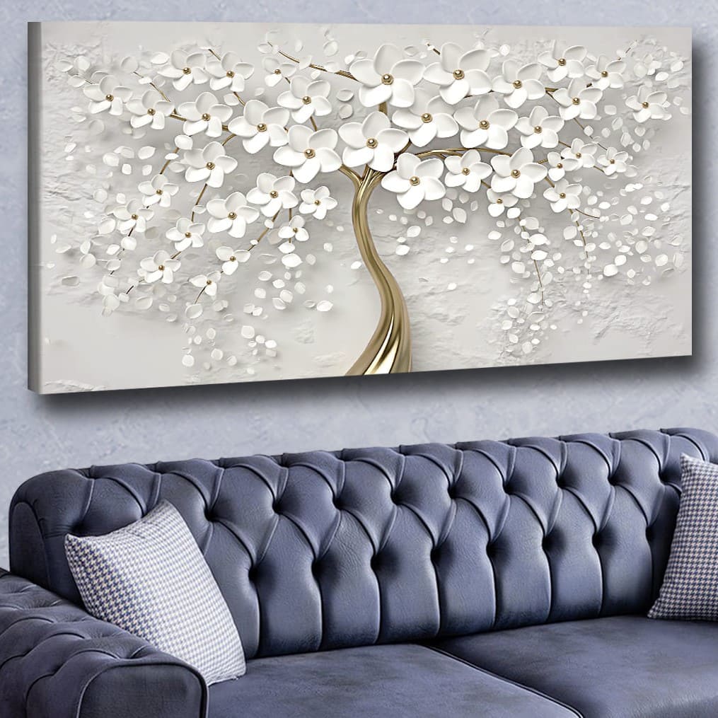 Beyaz Çiçekler Kanvas Tablo